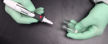 The Electronic SpatulaTM, utilizes the Nova TechnologyTM in a hand-held device for manual collection of dry compounds – especially valuable for collecting those electrostatically-charged compounds that cling to the sides of the vial. Using the Electronic SpatulaTM, charged particles can be collected from the sides of the vial or driven to the bottom of the vial for collection = less compound loss.