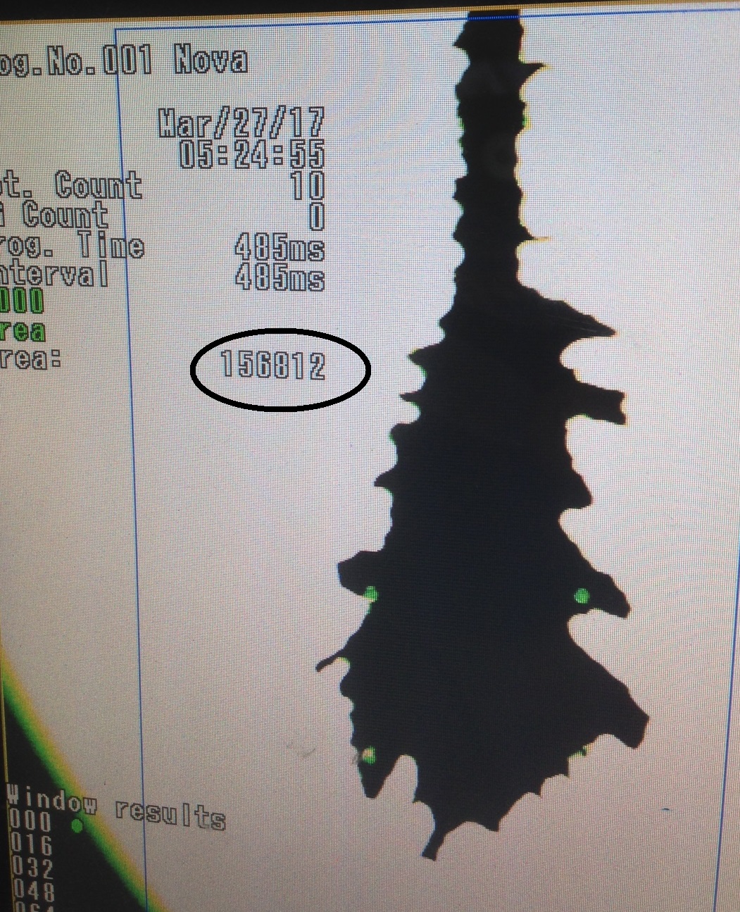The Vision System first captures an image of the empty collector pin's shadow and determines the pixel count for that shadow's area. The Nova then makes a collection followed by the capturing of a second image of the loaded collector pin's shadow. And again, determines the pixel count of that shadow's area. Knowing that the compounds collect uniformly around the circumerence of the collector pin and knowing                               the weight collected and the change in                             pixel counts, a "weight to pixel                                 count" conversion factor is developed                       and used if additional collection attempts are required. The destination scale will make the ultimate determination as to the amount collected.